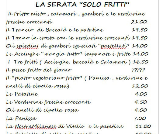 La domenica sera menù speciale: SOLO FRITTI!